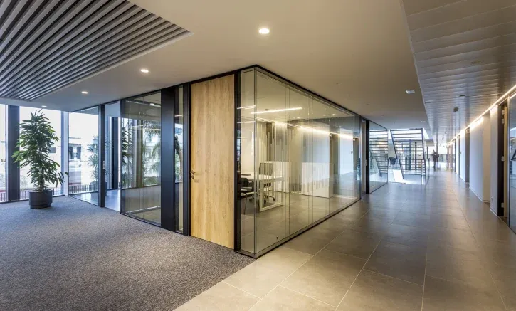 - Mamparas divisorias: ayudan a definir áreas y aislar acústicamente sin romper la continuidad visual.